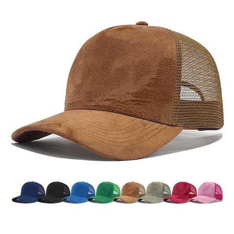 Cappello da camionista in pelle scamosciata di alta qualità con Logo ricamato 3D personalizzato con 5 pannelli a telaio con maglia vuota
